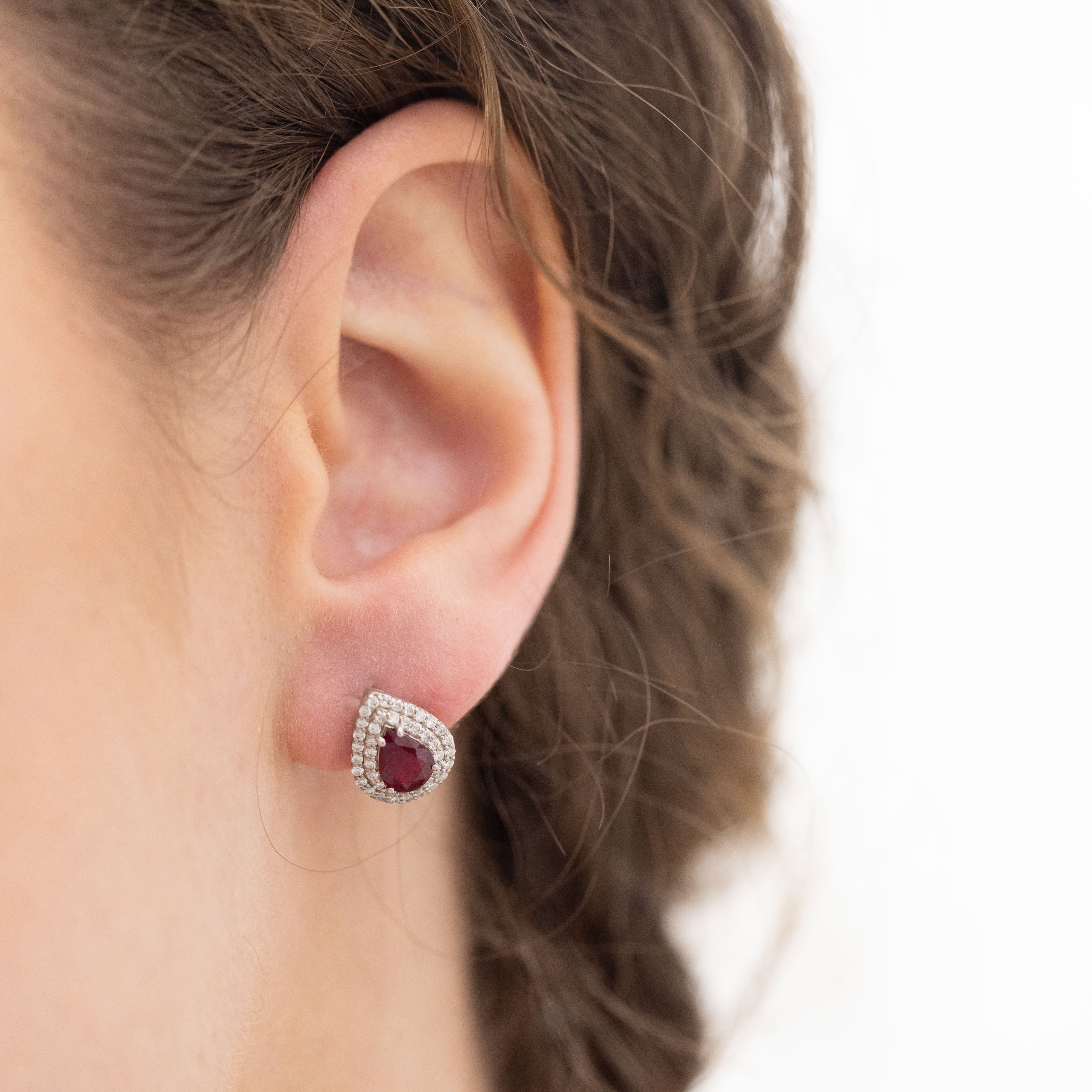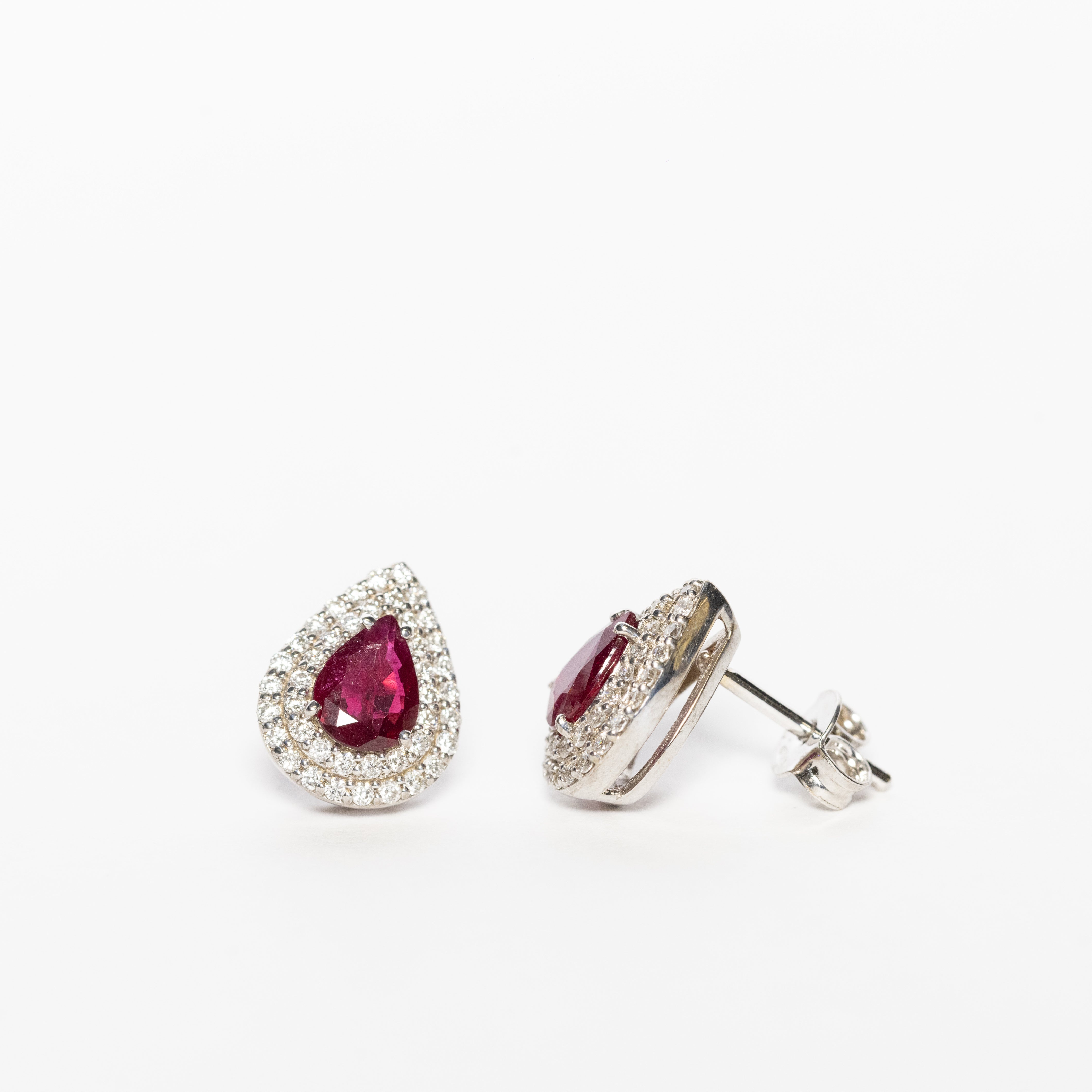Orecchini In Oro Bianco 18 Kt Con Rubini Taglio Goccia Contornati Di Diamanti