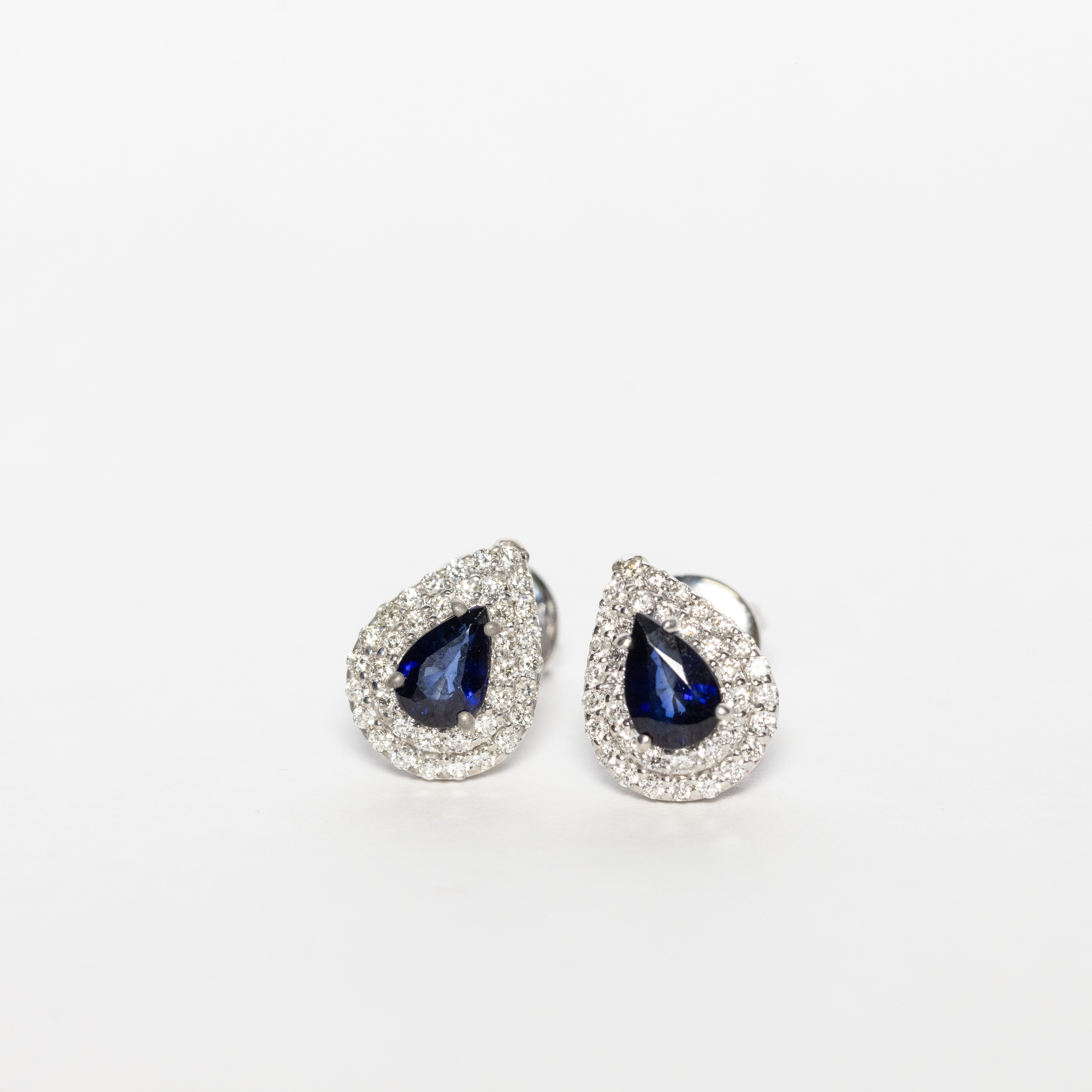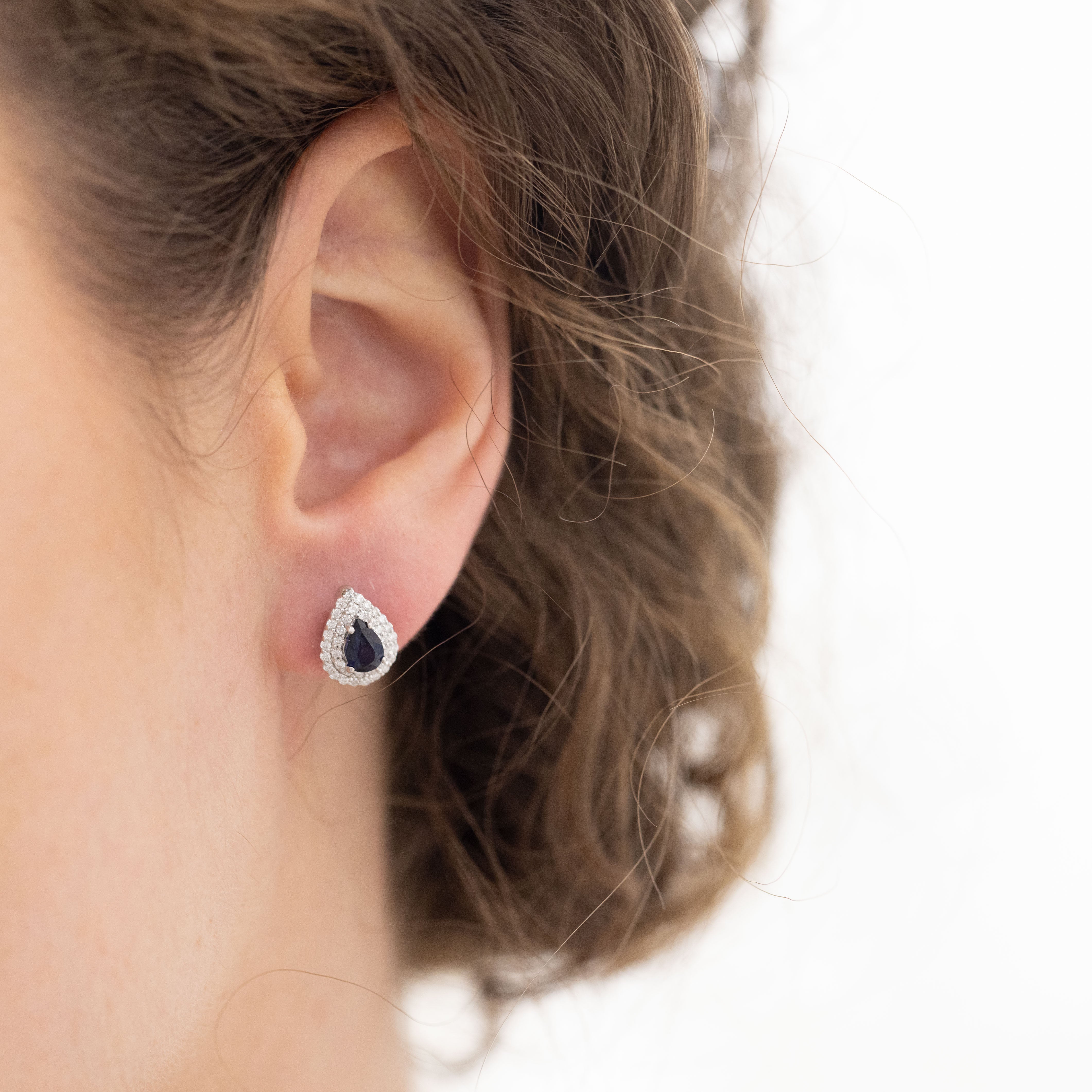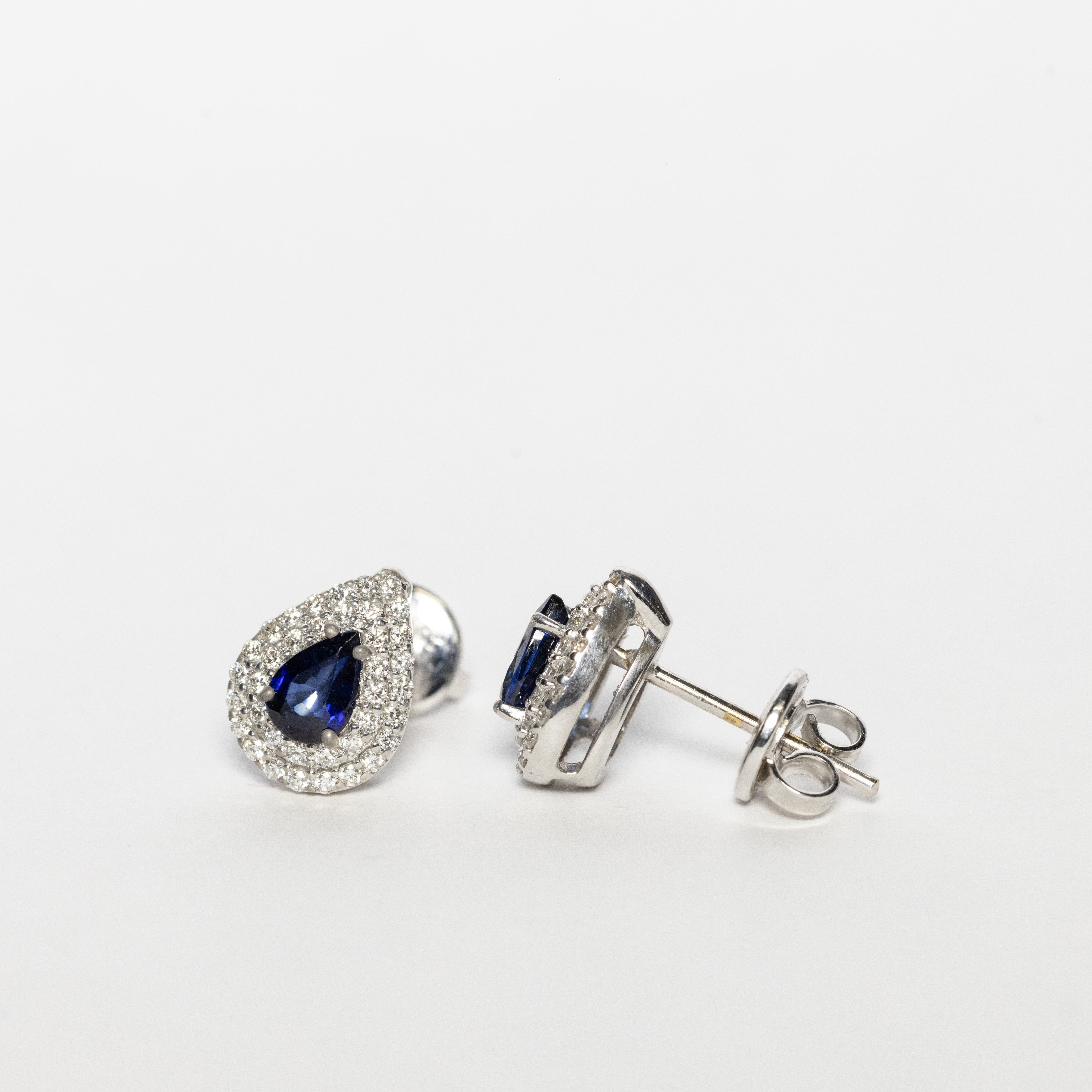Orecchini In Oro Bianco 18 Kt Con Zaffiri Taglio Goccia Contornati Di Diamanti