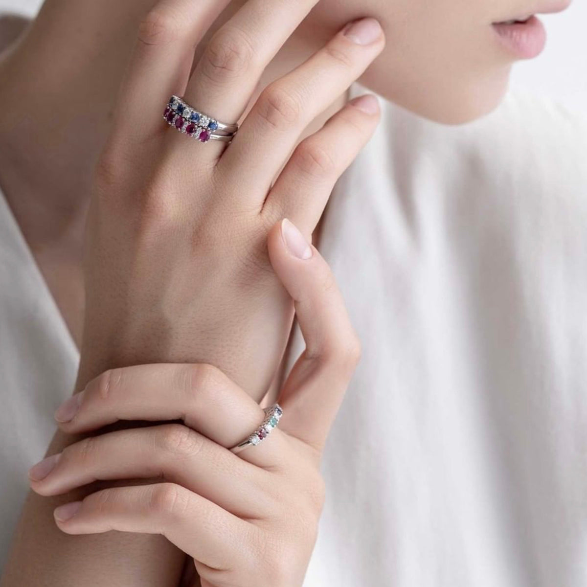 A wide selection for you: brightly colored rubies, intensely colored emeralds, ocean-colored sapphires, aquamarines and much more.