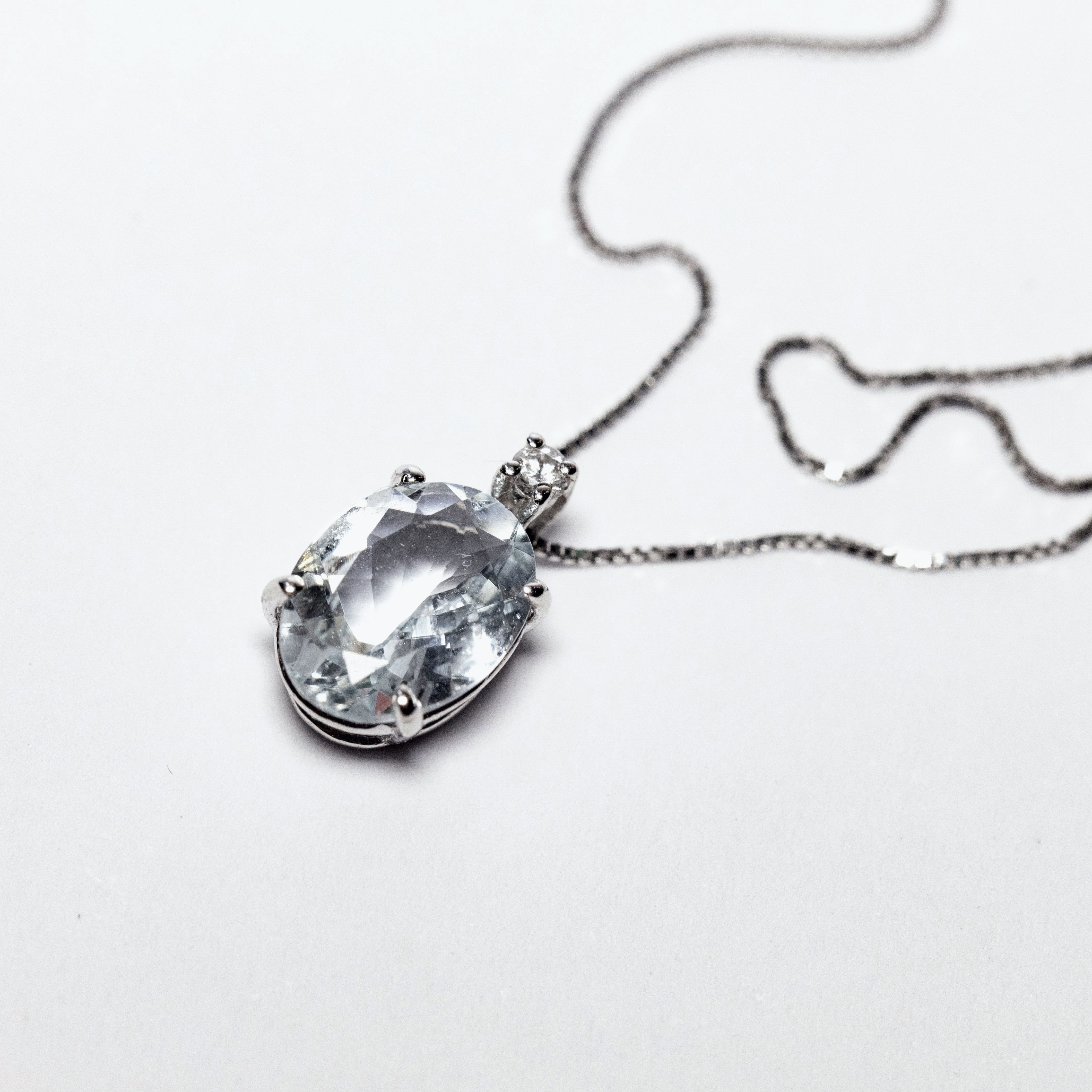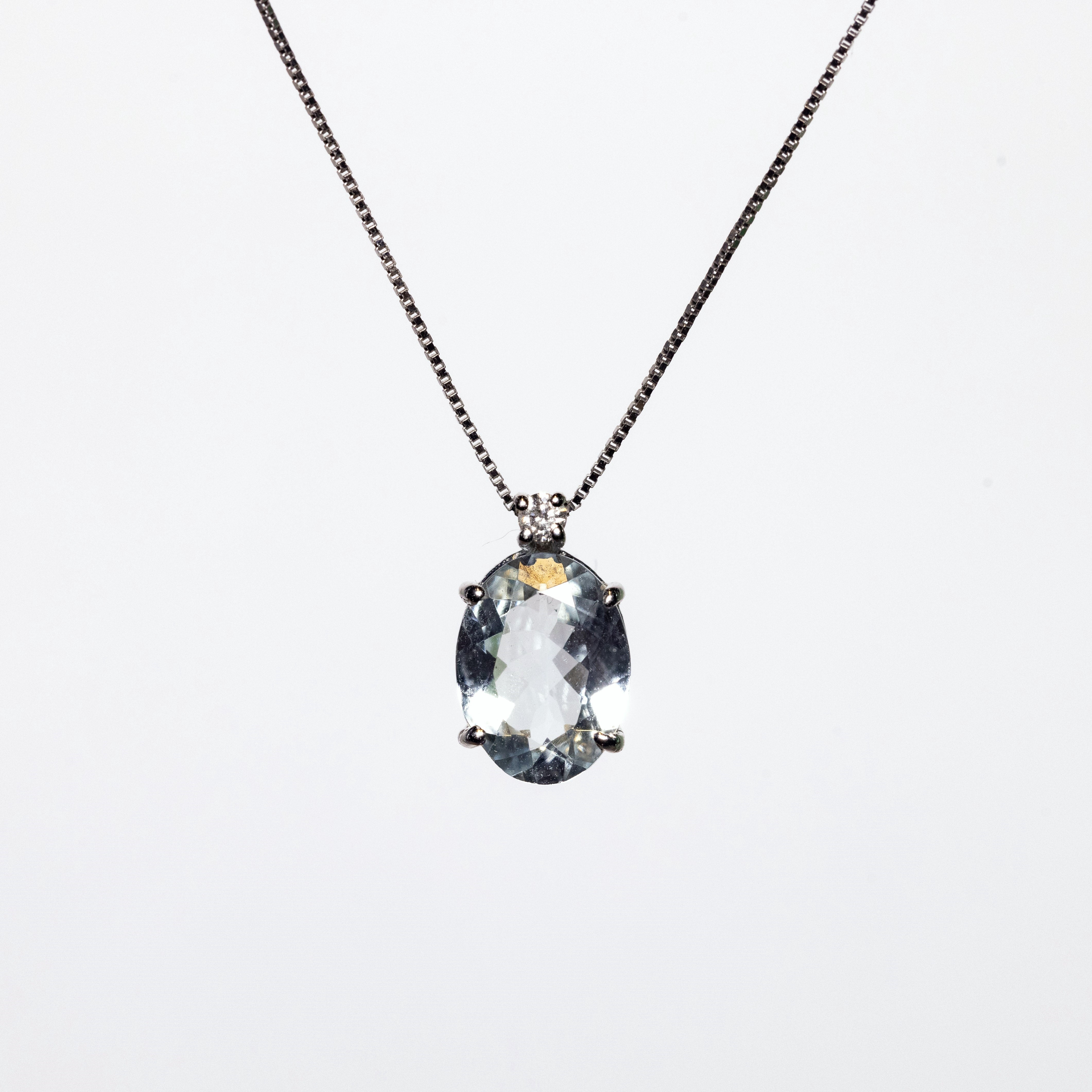 Collana in Oro Bianco 18 kt con AcquaMarina Taglio Ovale